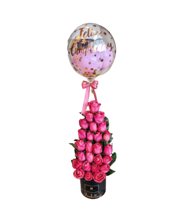 Box con Rosas Rosadas entregando un toque delicado y Globo Personalizado